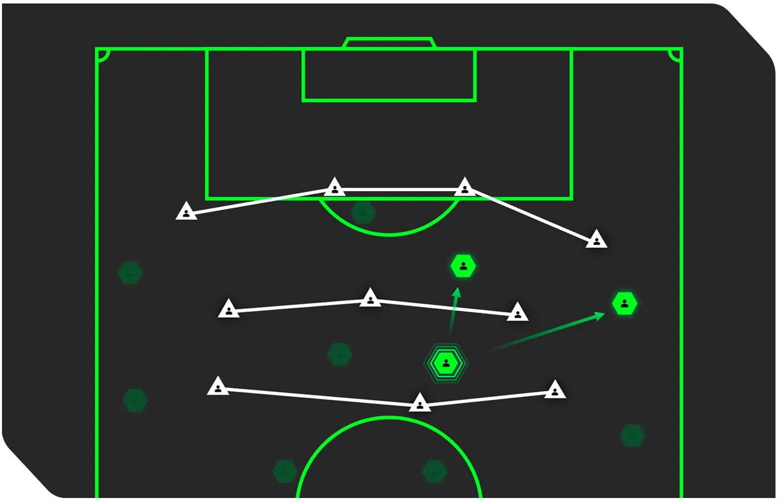 We’re looking for players who position themselves in the ‘half-spaces’ between the opposition’s midfield and defensive lines to receive the ball, create dangerous situations and tempt opposing defenders out of position.